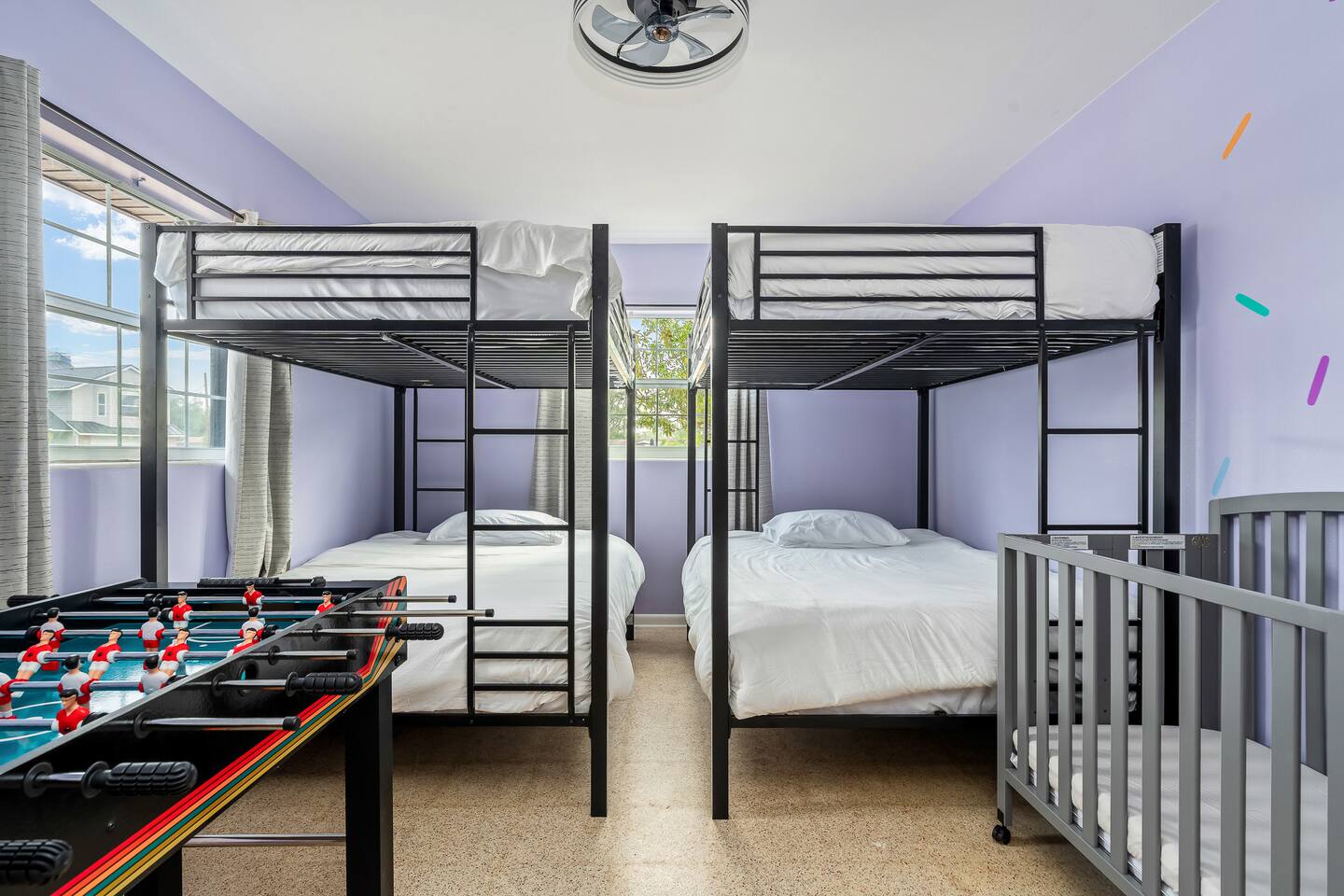 Welcome to the Ice Cream House, a one-of-a-kind 3,000 sq ft vacation home designed for fun, family, and friends! This 6-bedroom, 3-bathroom retreat is filled with vibrant colors and whimsical touches, including a hand-crafted pink swirl sculptural room by a NY artist. ***INDOOR AMENITIES: - Bedrooms & Sleeping: Comfortably sleeps large groups with 5 luxurious King beds and a dedicated kids' bunk room with 4 full-size beds. A crib and a pack-n-play are also available. - Entertainment: The fun never stops with a dedicated karaoke room (2 microphones included), a game room featuring an arcade machine and pool table, giant jenga, corn holes and a large TV with Netflix for movie nights. - Unique Features: A special ice cream-themed room includes a pink slide, perfect for children 8 and under. - Kitchen & Laundry: A newly renovated, fully equipped pastel-colored kitchen is ready for your culinary creations. For convenience, the home includes two sets of washers and dryers. - Kids Friendly: We provide a crib with a comfortable crib mattress and bedding sheets. A pack & play, a high chair, a baby gate, kids swimming vest, kids beach toys, kids' dinnerware, and a portable light stroller. We have door alarms installed at each of our patio door to alert the parents every time a kid entering in/ out of the house. ***OUTDOOR PARADISE: Your private, activity-filled backyard oasis includes: - Heated Pool: Enjoy the complimentary heated pool (set to 78°F) with a brand new deck, pool lounge chairs, fun floats, and a pool basketball hoop. A 2 person daybed with canopy for the Florida Breeze. - Games Galore: Challenge your group to a round of mini-golf, outdoor bowling, mini beach volleyball, or soccer. - For the Kids: A playground with two slides and swings, plus sand and beach toys. - Relax & Dine Alfresco: Unwind in the hammock next to the 'Greetings from Tampa' mural, gather around the 12-person fire pit, or share a meal at the 12-person outdoor dining table. A BBQ grill is also provided for your use. Our place is very popular 💖 for kids and adults! Book now to secure your dates! Don't forget to 💖 our property and save it on your wishlist! ***Our House Rules - Reservation Confirmation: Your booking is not confirmed until you complete three mandatory steps within 24 hours: ID verification, signing our rental agreement, and setting up the $500 refundable security deposit. - Security Deposit: A $500 security deposit will be collected 2 days before check-in and automatically released 2 days after check-out, provided there are no damages. - Check-in/Out: Early check-in or late check-out may be available for a fee and must be approved in advance. Unauthorized early arrivals or late departures will incur a penalty of $50 for every 30 minutes. - Guest Limit: The maximum number of overnight guests is 14, unless otherwise agreed. Only individuals listed on the reservation may stay overnight. Please inform us prior to check in if you wish to have any additional guests. Any unauthorized additional overnight guests/ daytime visitors beyond our maximum occupancy without our approval will result in $200/ per person per day, and will risk being asked to check out with no refund. - Daytime Visitors: If you have additional daytime visitors (between 9am-6pm), please let us know how many and we'll see if we can accommodate your need (additional fees may apply). - Parking: Max number of cars for parking: 4 cars. Only 4 cars are allowed to park in our driveway. No street parking is allowed, per county law. Violation of parking more than 4 cars in front of our property or street parking, a fine of $500 will be requested. - Quiet Hours (9PM-9AM): Do not gather around the pool and the fire pit area after 9PM. A noise monitor is onsite to help maintain respectful noise levels, especially during quiet hours (9PM-9AM). If the noise level is detected to be over 55dbA, the host will reach out to the guest to reduce the noise. If the noise level continues to be over 55dbA,10 mins after the first warning, we reserve the right to charge a fine of $500 and cancel the reservation immediately without any refund. - Good Neighbor Policy: Do not trespass on neighbors' properties, disturb the neighbors or ring their doorbell. If anything goes onto a neighbor's property, let us know and we'll get it back. - Events: Not allowed, unless otherwise agreed. Events including birthday/ anniversary/ baby shower/ bachelorette / graduation celebrations. If you are going to have an event at our property or if you plan to hire an external service provider (i.e private chef, massage therapist, hair stylist, photographer, fitness coach, etc) to perform services at our home during your stay, please kindly inform us prior to your check in. Additional fees may apply based on individual scenarios. For events (if approved by us), NO fireworks, NO glitter, confetti within or outside of our property. Do not bring indoor furniture outside at any time during your stay. Any unauthorized event will result in a minimum fine of $2,000, and will be asked to check out with no refund. - Animals: We’re happy to welcome up to 4 well-behaved dogs up to 50 lbs and at least 1 year of age (sorry - no puppies). Exceptions may be considered on a case by case basis and must be pre-approved by us. Dogs must be crate trained and please clean up after your dog. No cats or other animals. Any animal wastes in the house or in the yard within our property lot will be charged an additional cleaning fee of $300. Animals are not allowed on uncovered bedding or furniture. We can provide blankets for use on beds and furniture, if requested. House linens and blankets may NOT be used as pet bedding. Excessive fur on furniture or bedding may incur additional linen fees of $200. Any unapproved/undisclosed animals (emotional support animals or Service Animals) without communication with us prior to booking will result in a fine of $250 per animal. If cigarette butts are found anywhere on 